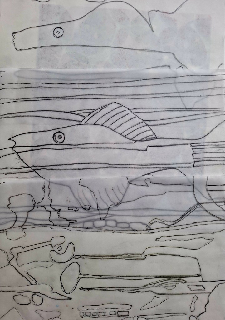 Vooraf heb ik transparanten getekend om een idee te hebben van de totale compositie.